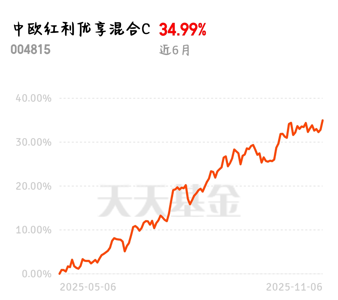 现在不少投资者都在从高波动板块撤离,转而寻求稳健收益,红利板块成了热门选择。我持有的中欧红利优享灵活配置混合C近6个月收益34.99%,表现远超预期。不追热点、专注价值,这种投资方式在当下市场太明智了。