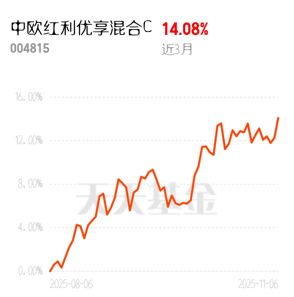 市场情绪低迷,大盘涨涨跌跌,很多人都对基金失去了信心。但我持有的中欧红利优享灵活配置混合C给了我惊喜,近3个月收益14.08%。基金经理的专业操作加上红利策略的优势,让我在震荡市中也能赚到钱,特别靠谱。
