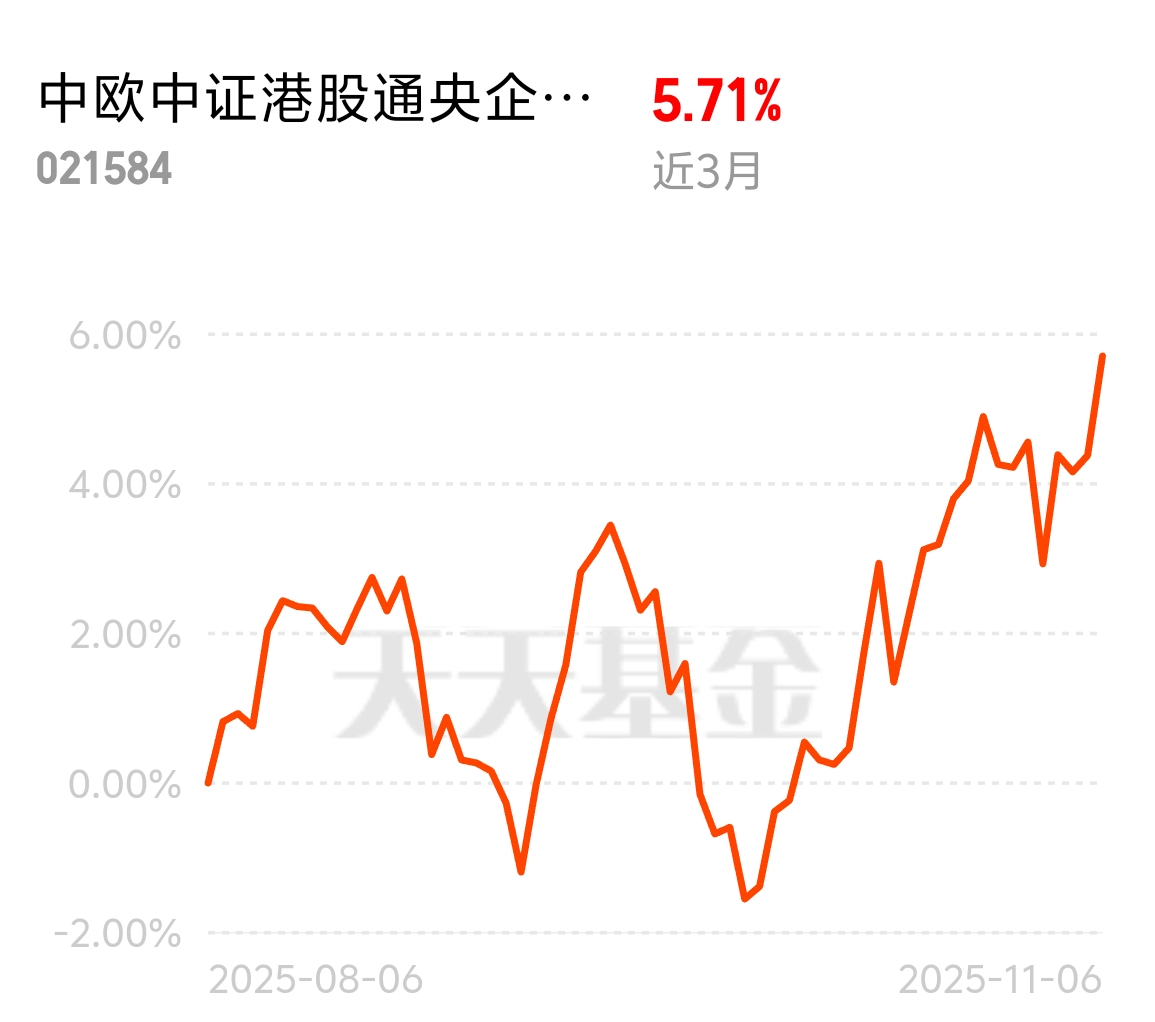 最近很多板块回调明显,不少投资者亏了不少,真心觉得抗跌比啥都重要。我配置的中欧中证港股通央企红利指数(QDII)C近3个月涨了5.71%,央企红利策略抗跌性强,还能保持正收益,是投资组合的稳定器。