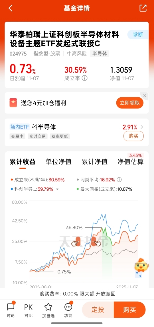 关注科创半导体设备的朋友应该都发现了,这板块最近太强势了!11月初以来涨多跌少,就算有小幅回调也很快拉回来,整体趋势一路向上。核心逻辑其实很简单,半导体行业现在回暖,设备作为“卖铲人”肯定最先受益,加上AI需求爆发,对芯片的需求越来越大,上游设备自然跟着吃香。国家还一直在推国产替代,政策红利不断释放,长期来看发展空间太大了。我对比了好几家,最终选了华泰柏瑞,它跟踪的指数专门覆盖科创板的半导体设备和材料企业,都是硬科技尖子生。关键是C类费用低,没有申购费,短期做波段或者长期持有都合适,不用纠结手续费,适合咱们普通投资者跟风布局~