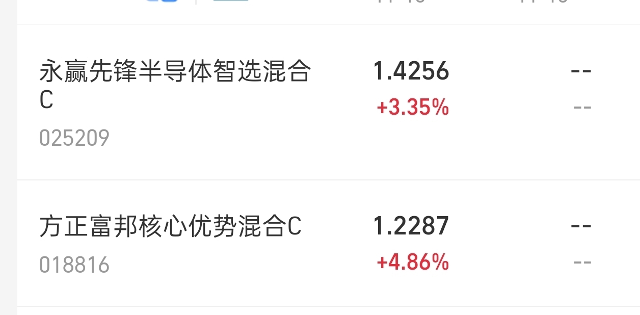 $方正富邦核心优势混合C$ 今晚涨了4.86%,真的牛逼啊