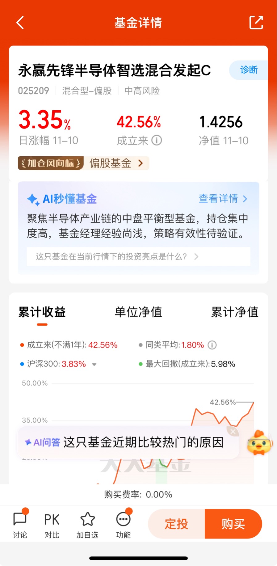 $永赢先锋半导体智选混合发起C$昨天收3.35%,近一个月收16.86%,表现优