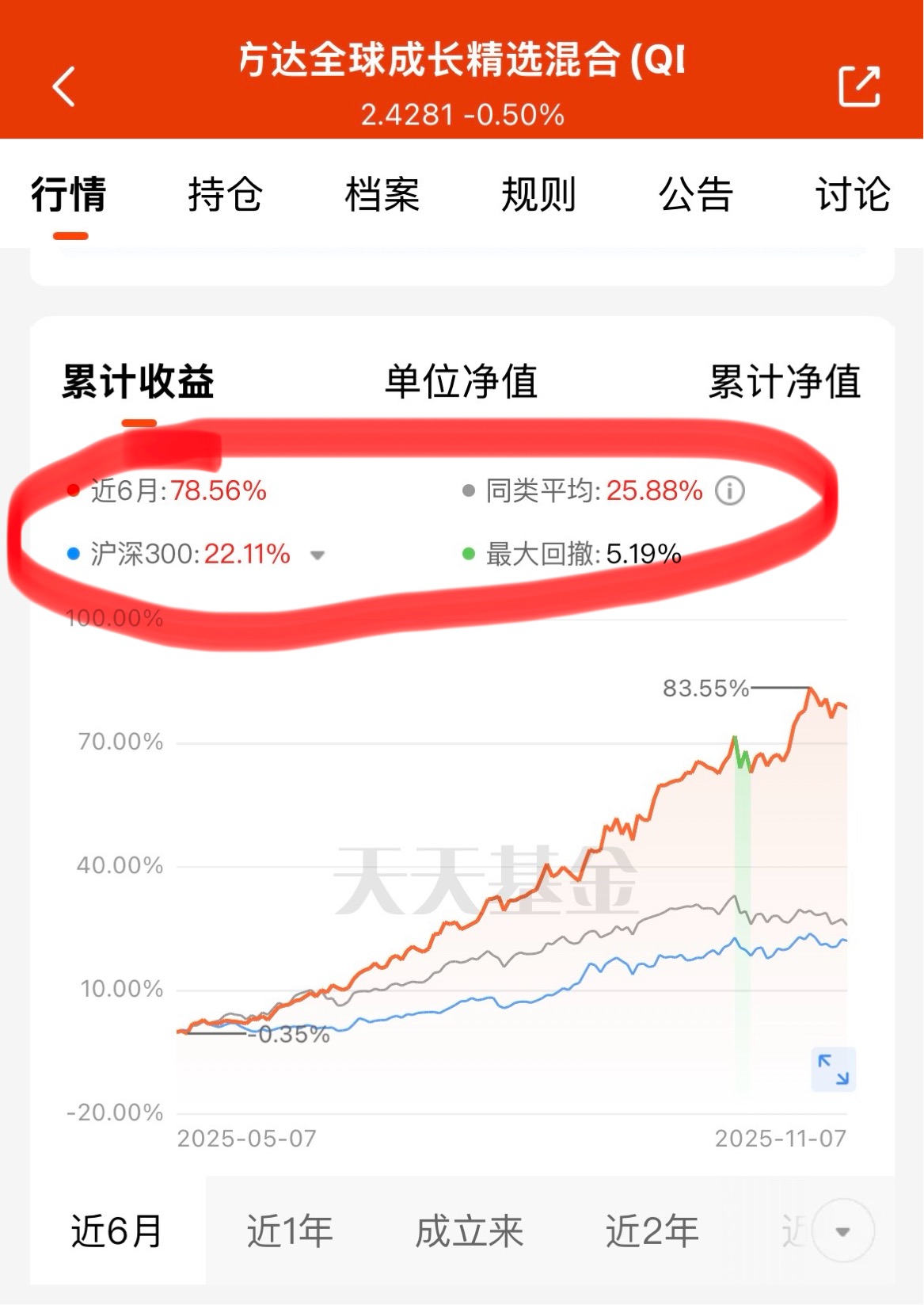 看看这只基金$易方达全球成长精选混合(QDII)人民币C$ ,近6个月上涨78.56%,远超同类平均(25.88%),这涨势谁看了不羡慕。