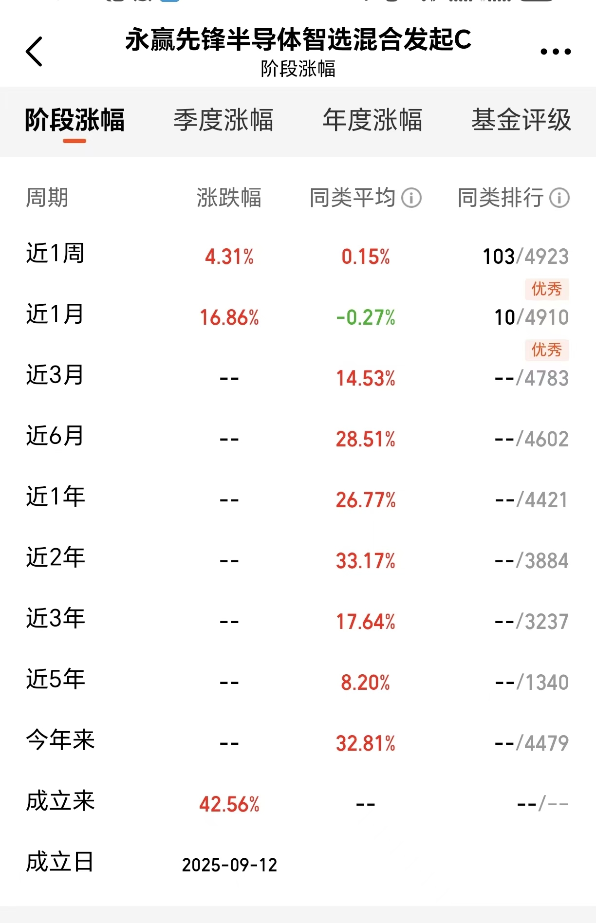 近期的行业动态更让我坚定了信心。根据最新数据,10月份国内存储芯片进口量同比下降了15%,这背后是国产存储芯片技术不断突破,替代能力越来越强。比如国内某头部企业刚宣布128层NAND闪存实现大规模量产,不仅产能提升了,产品性能还达到了国际先进水平,这直接带动了整个国产存储产业链的活跃。国际市场上,三星、SK海力士等大厂也在持续减产,进一步收紧了供给,给存储芯片价格提供了有力支撑。而永赢先锋半导体智选混合发起C(025209)作为9月才发行的新基金,刚好踩准了这波节奏,深度锁定存储芯片赛道,近1个月就涨了16.86%,成立以来更是取得了42.56%的收益,这样的表现确实让人惊喜。