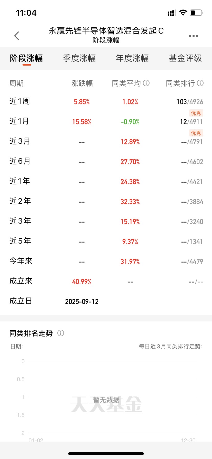 $永赢先锋半导体智选混合发起C$ 是一只刚成立不久的聚焦半导体产业链的基金,持仓集中度高,弹性强,近一周涨了5.85%,同类平均1.02%涨幅,近一个月涨了15.58%,同类平均−0.90%,业绩表现优秀,远超同类平均表现,可见弹性十足啊!永赢先锋半导体主要聚焦存储芯片产业链,随着AI需求还在高速增长,值得关注起来了!#科技小登大揭秘#