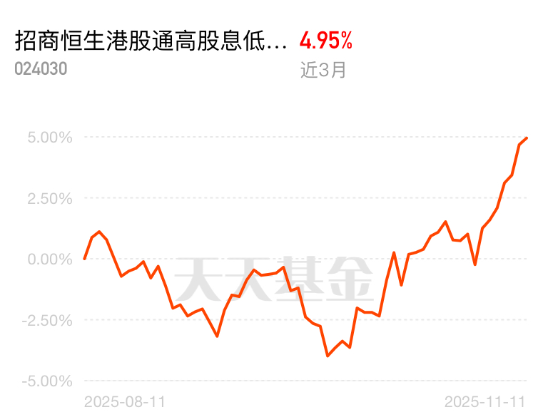 近期资金不断持续流入高股息板块领域,市场热度一直在持续攀升居高不下。招商恒生港股通高股息低波动ETF联接C3个月收益4.95%,月月分红,蹭上市场热度赚一波可观丰厚收益。$招商恒生港股通高股息低波动ETF发起式联接C$