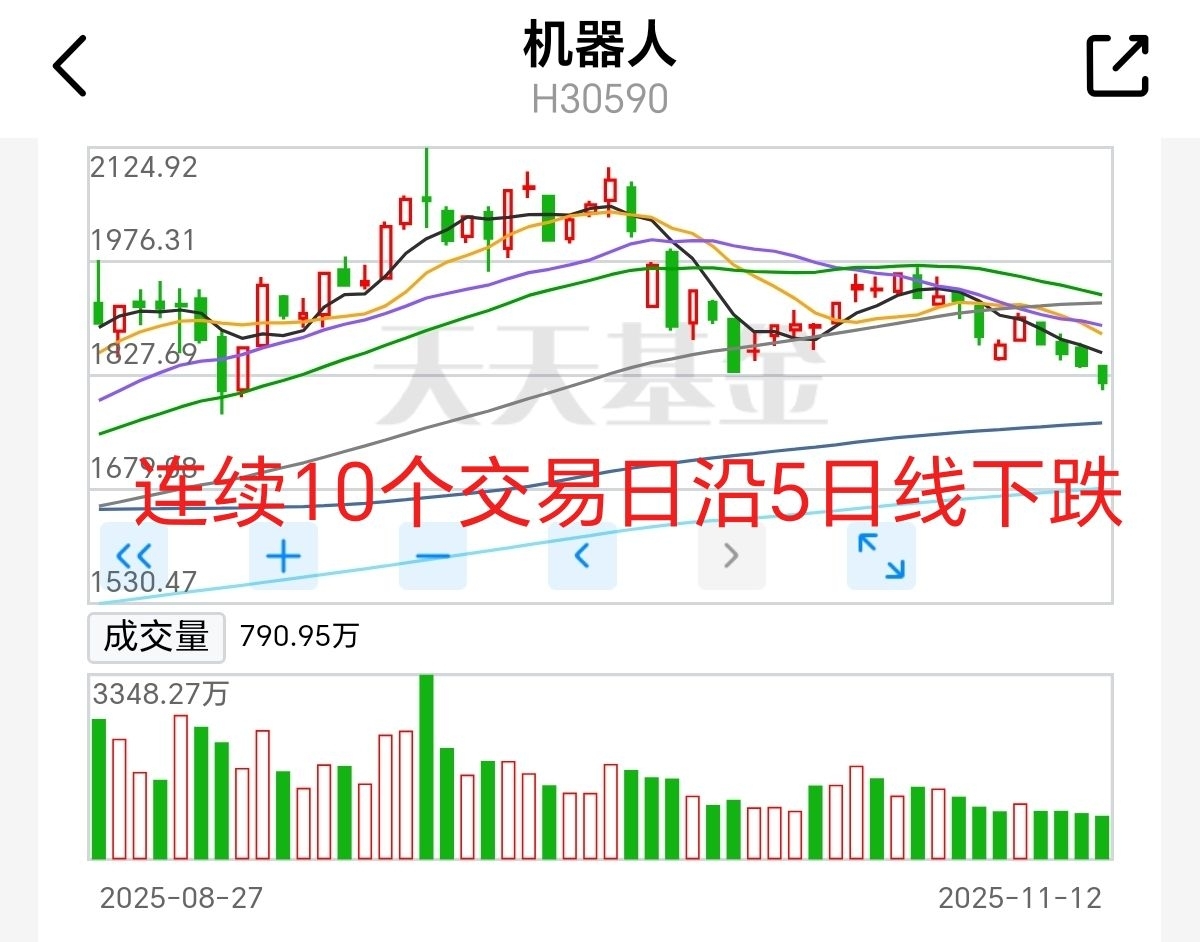 最令人无奈的是任凭各种利好,许多科技板块也为所动。比如机器人己经免疫了小鹏机器人发布,以及今天特斯拉机器人工厂的消息。对利好不敏感,k线又己进入下跌通道。只能说,去弱留强是必须的决择。在下跌通道死扛某个板块,只有3种战法可赢:一是杀伐果断,先出来观察,保住利润。二是做T,这个不太适合场外基。三是有钱人做定投。我是波段操作者,选第一种,静待下跌到底、磨底、确认上升通道后,再重新上车!旦凡5日线死叉20日线,股价沿5日线下跌的板块,不管他故事讲得多美妙,业绩多亮眼,我都走人!不立危墙之下。