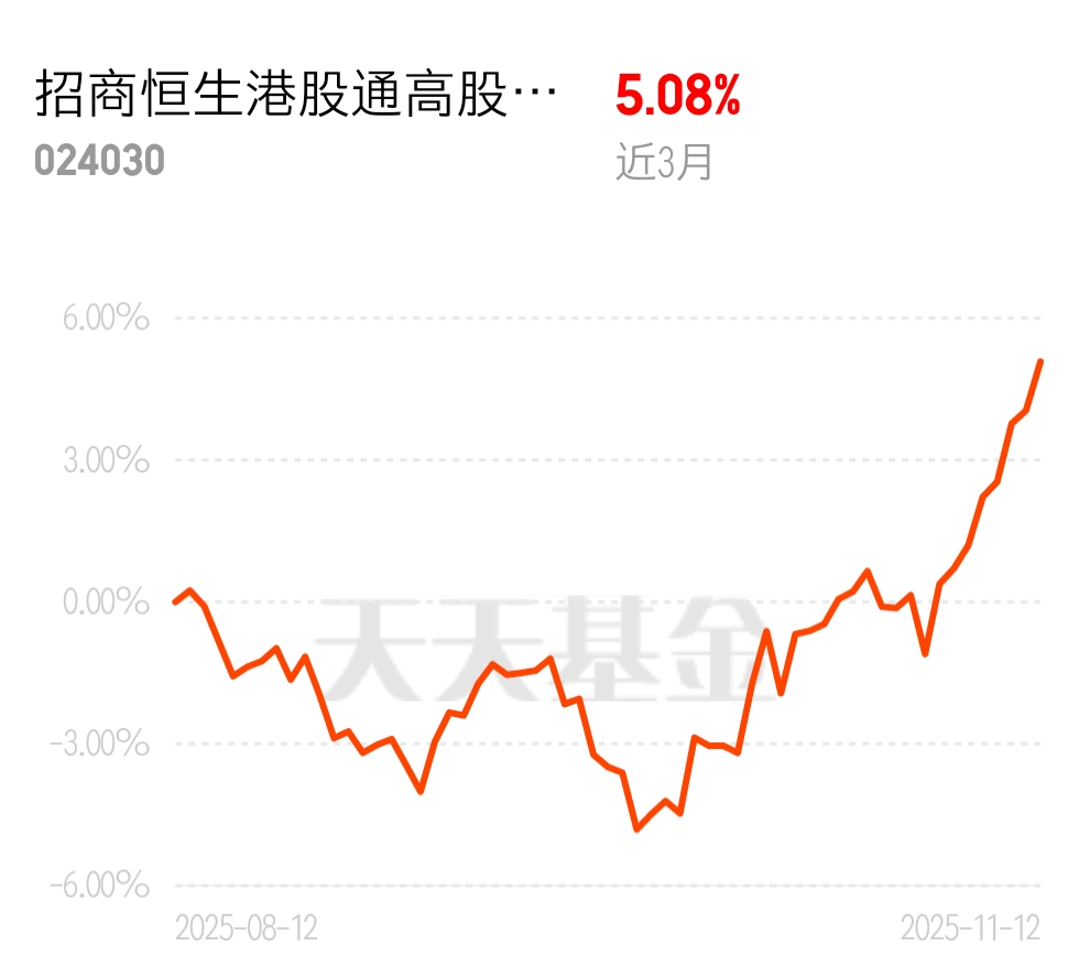 传统理财收益不给力,权益市场又起起落落,稳健型投资者很难找到合适的产品。招商恒生港股通高股息低波动ETF联接C近3个月收益5.08%,指数股息率达6%,金融地产权重超60%,低波动还低费率,定期分红机制让长期持有更省心。 $招商恒生港股通高股息低波动ETF发起式联接C$