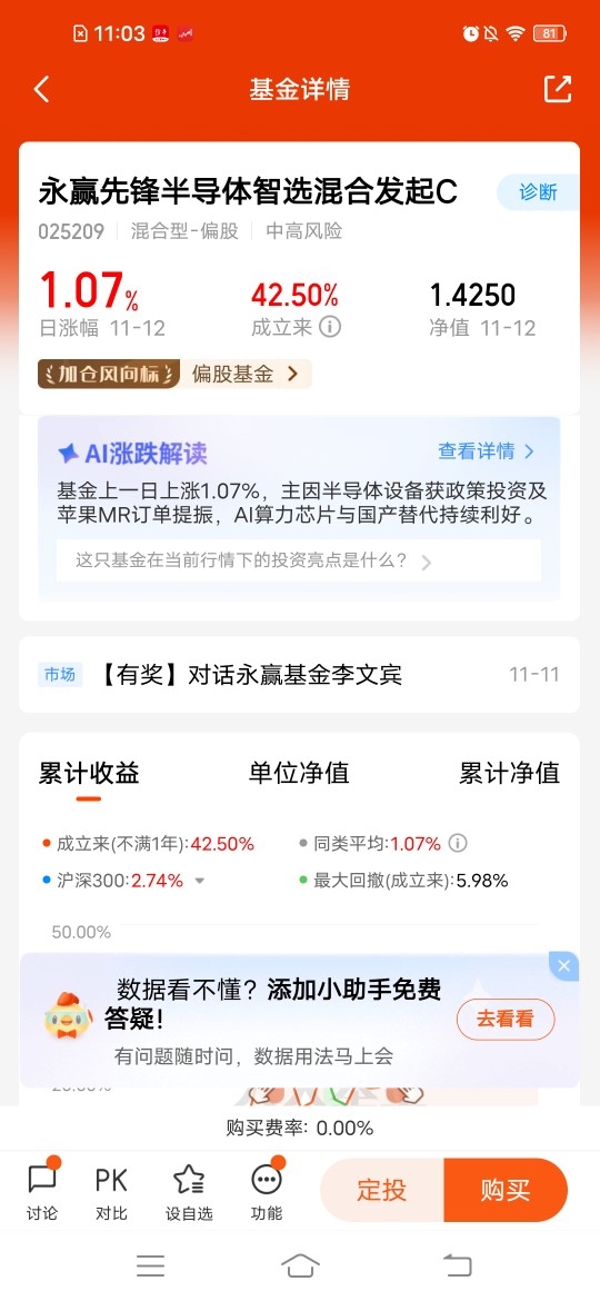 $永赢先锋半导体智选混合发起C$新发基金更有动力,近一周涨幅7.36%,成立以来