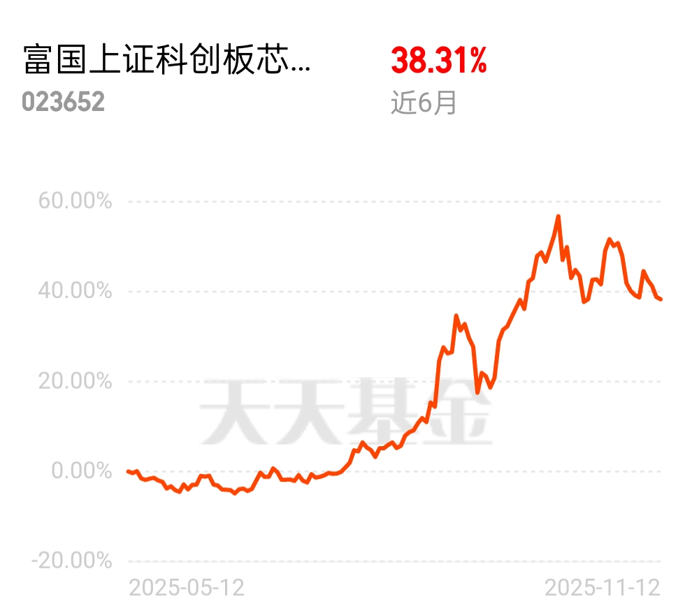 持仓永赢先锋半导体智选C,又配了点富国上证科创板芯片ETF联接C,看中它专注芯片、AI算力和汽车芯片这些硬核方向,老将管理,近6个月涨了38%,超越多数同类。$富国上证科创板芯片ETF发起式联接C$