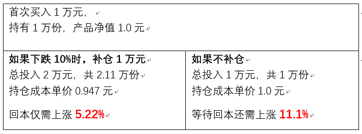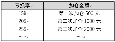 (2) 金字塔加仓法:简单地说亏损越多,加仓金额越大。这样能实现越跌越买,拉低持仓成本,在市场回暖时更快回本。举个例子: