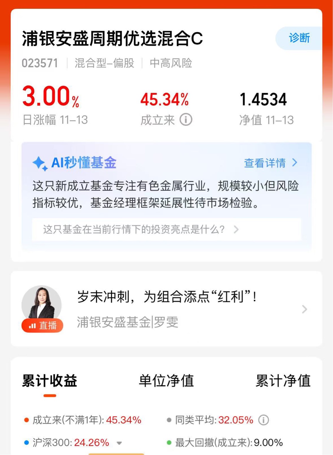 浦银安盛周期优选持仓风格比较平衡,基金经理对宏观研究特别深入,尤其是像有色这种典