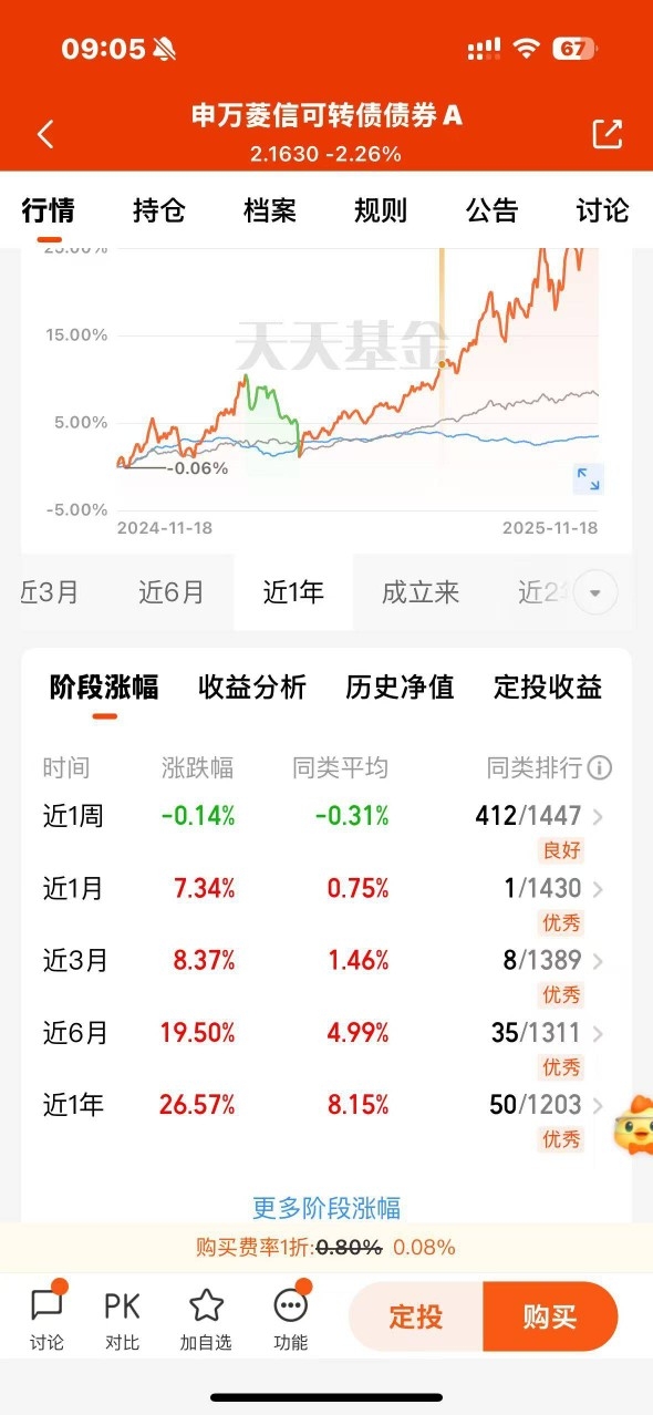 权益市场持续发力,可转债市场跟着升温,这类股债双栖的品种性价比超高。申万菱信可转债债券A顺势而为,近6个月涨19.50%,近1月排名第一,既有个股的上涨潜力,又有债券的稳健属性,顺着市场行情一路走高,果断跟进。