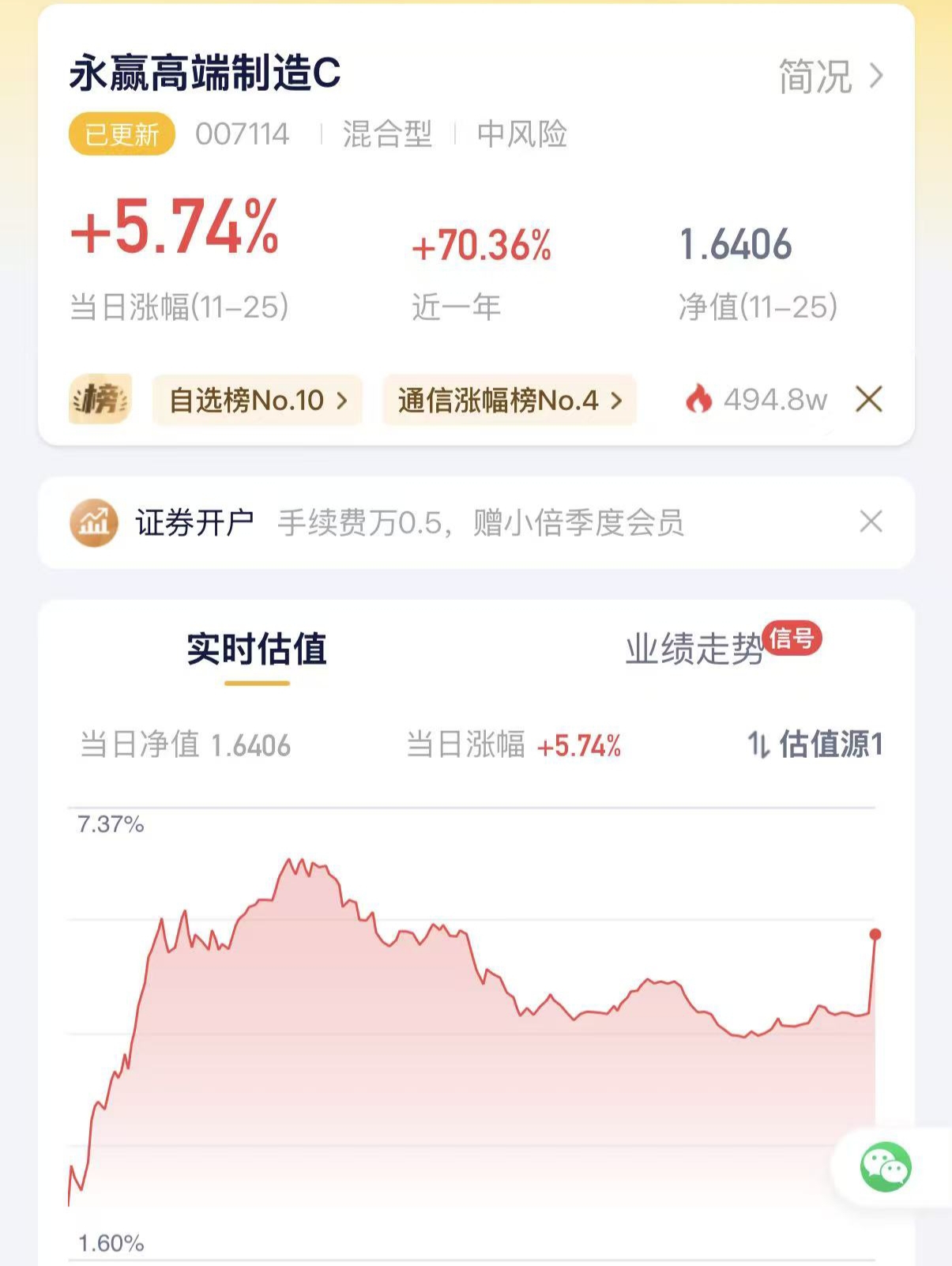 $永赢高端制造混合C$涨了快6%。很棒哦