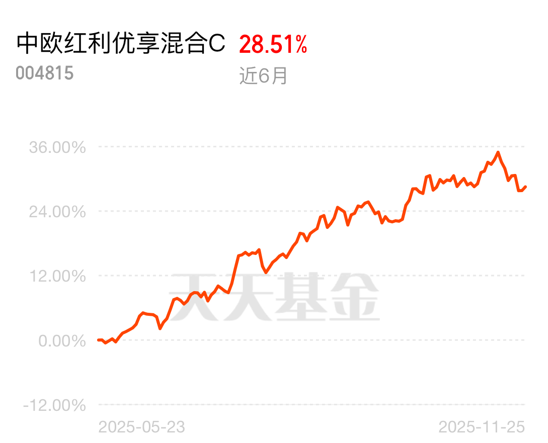 资金避险需求拉满,红利资产成避风港,中欧红利优享灵活配置混合C踩准节奏!重仓采矿业、金融业等现金流充沛板块,近6个月涨28.51%,近一年39.78%,策略有效性实打实。