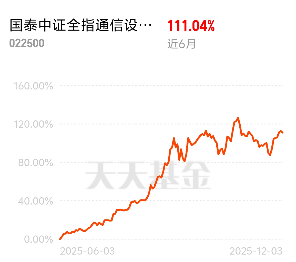 配置永赢先锋半导体智选C,我聚焦半导体前沿,但AI算力需要通信设备支撑。国泰中证全指通信设备覆盖下游,指数海外算力核心占比高,光模块、服务器等环节与半导体互补。基金弹性好,近6个月涨111%,反弹快,科技巨头谷歌、阿里发力AI利好,提升科技投资完整性。