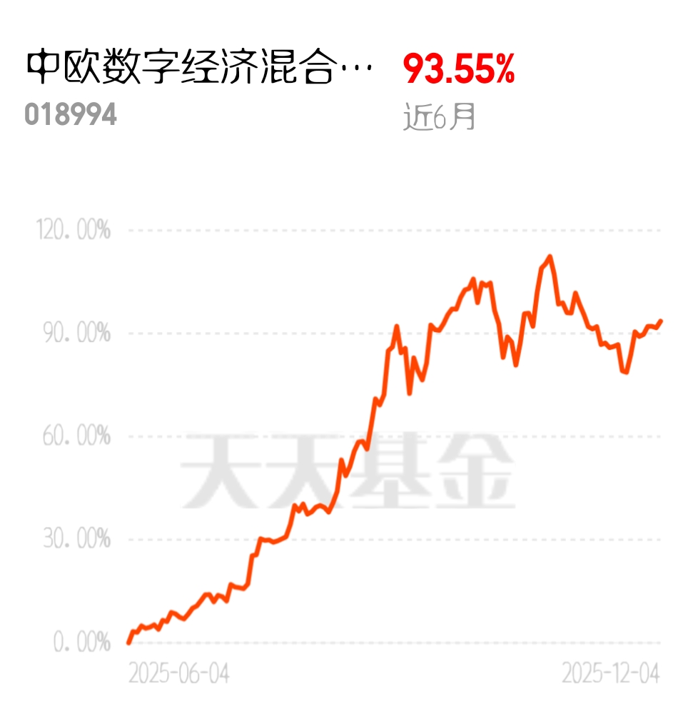 国产 AI 芯片市场规模破 500 亿美元,年增超 35%,国产替代加速。中欧数字经济混合发起 C 近 6 个月 93.55%,聚焦算力主线,成长弹性甩红利资产几条街!$中欧数字经济混合发起C$