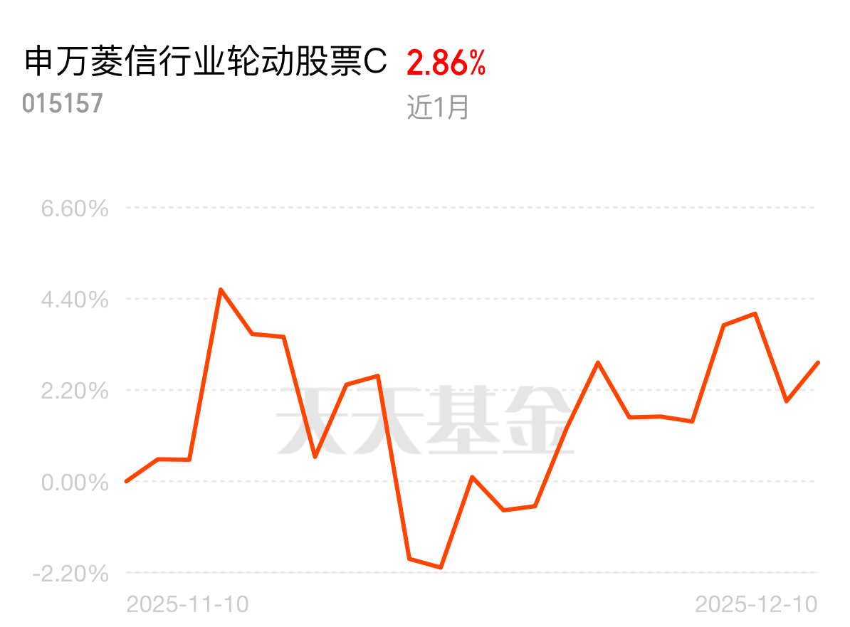 注意啦!美联储降息后有色板块彻底起飞,今天领涨全市场!申万菱信行业轮动 C 重仓紫金矿业等龙头,今日净值涨近 2 个点,近 1 月跑赢 90% 同类,回撤控制到位,这波别犹豫!$申万菱信行业轮动股票C$
