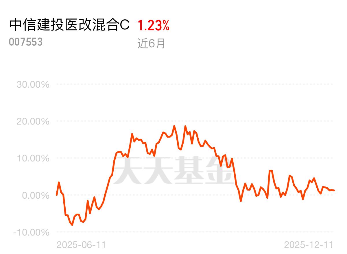 永赢先锋半导体智选C热度高但波动大,我反而关注中信建投医改C,近一个月涨了1%,跑赢同类。它全押恒瑞、荣昌生物等有出海潜力的创新药企。与半导体基金互补,创新药有消费属性,波动相对小,组合更平衡。回条时定投安心。