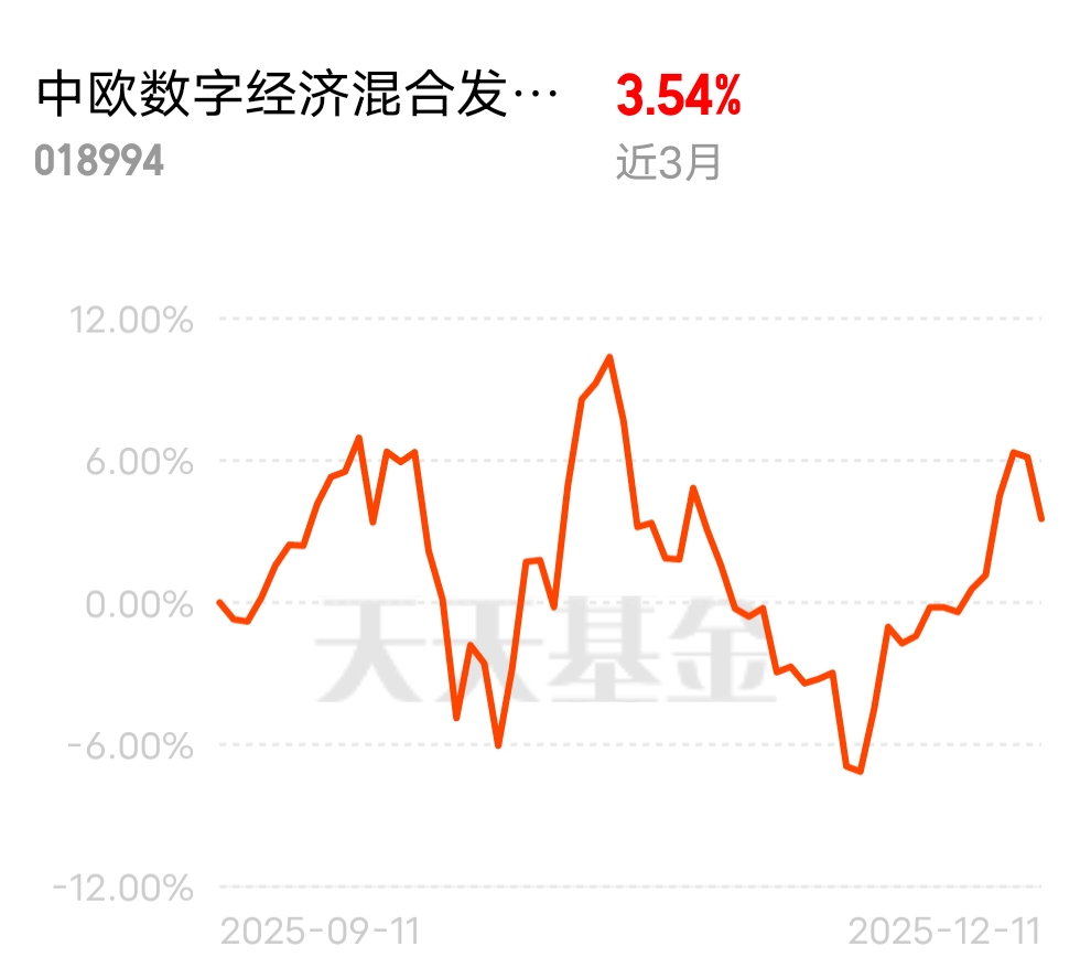 国家数据局刚发算力基建计划,2025-2027 年新建智能算力超 70%,光模块作为核心组件需求铁定涨。中欧数字经济混合发起 C 近 3 个月 3.54%,短期配置踩准政策风口。