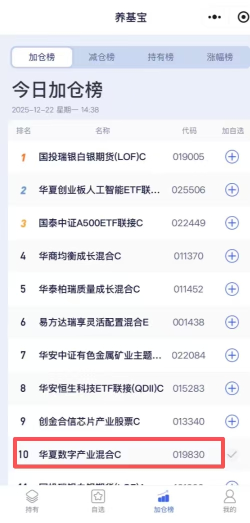 数字产业是我最近新了解到的赛道,这里布局的算力板块成长逻辑坚实,尤其是今天收益超5个点,爆发力很强,$华夏数字产业混合C$还在今天的加仓榜前十名,收益这么好,不观望了,明天开门就冲