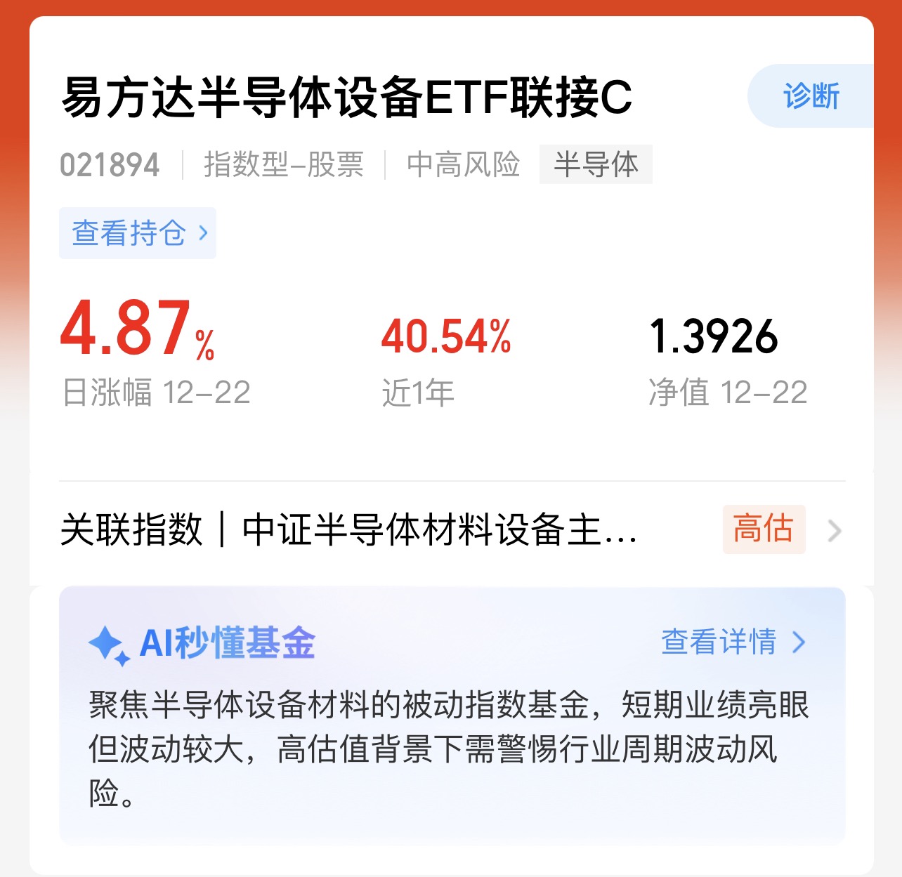 近期半导体产业链轮动加快,设备、材料、设计端齐发力,资金回流迹象很清晰。作为跟踪半导体产业指数的工具型产品,行情一启动,弹性也来得更直接。叠加政策支持与国产替代的中长期逻辑,短期情绪修复+长期产业趋势共振,对看好半导体方向的朋友来说,这波上涨算是一个积极信号,后续关注量能和持续性即可。