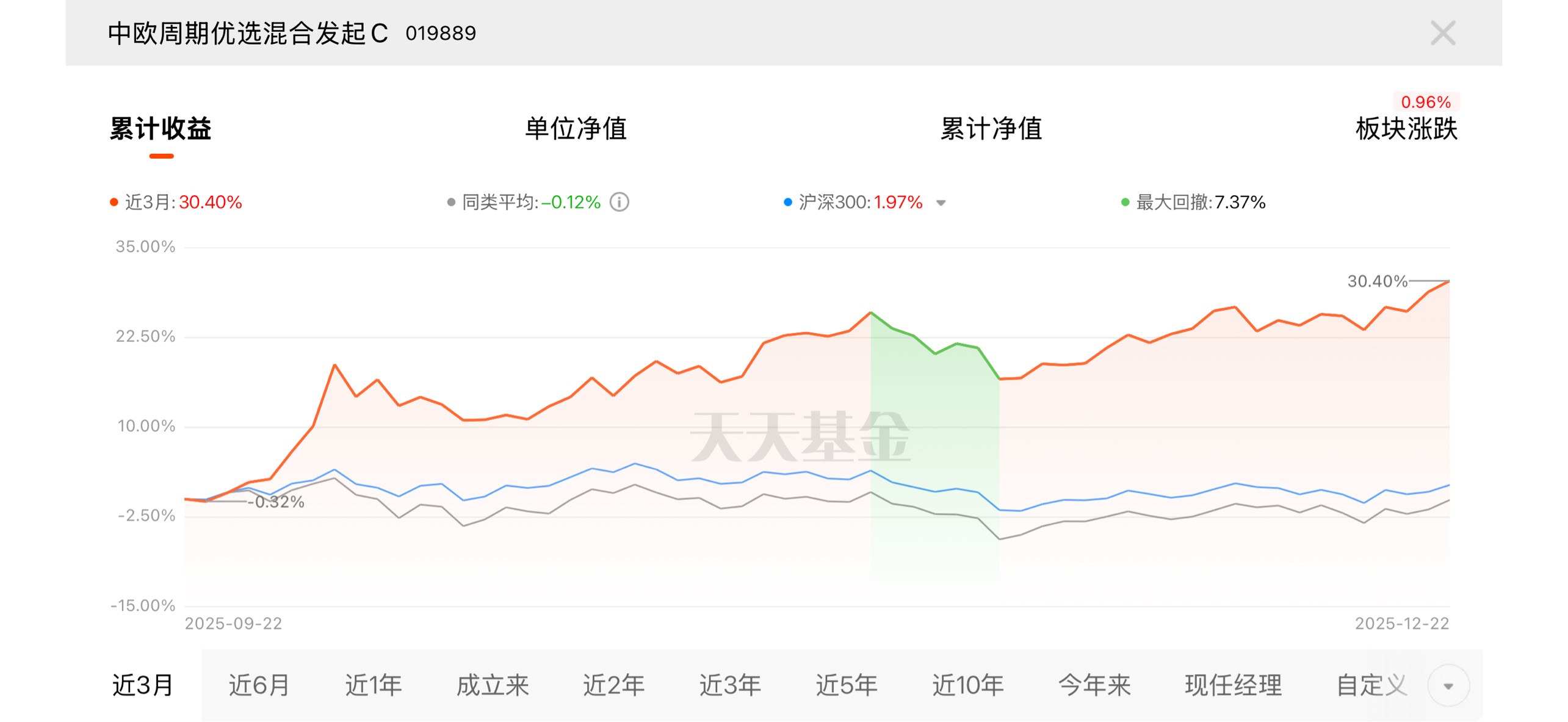 黄金突破 4000 美元关口,有色金属领涨市场,震荡市选对方向比啥都重要。中欧周期优选混合发起 C 近 3 个月 30.40% 同类第一,聚焦高景气资源,帮你稳稳接住行情。$中欧周期优选混合发起C$