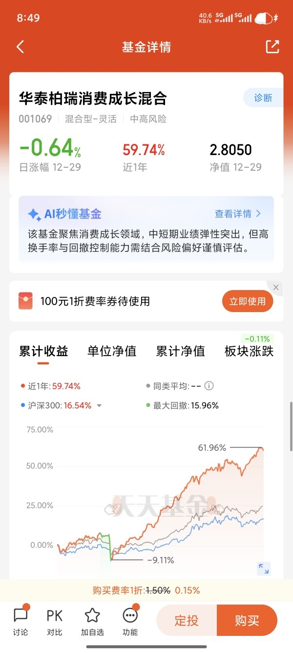 华泰柏瑞这只基金近1年59.74%的收益,在2025年消费成长的行情里简直是佼佼