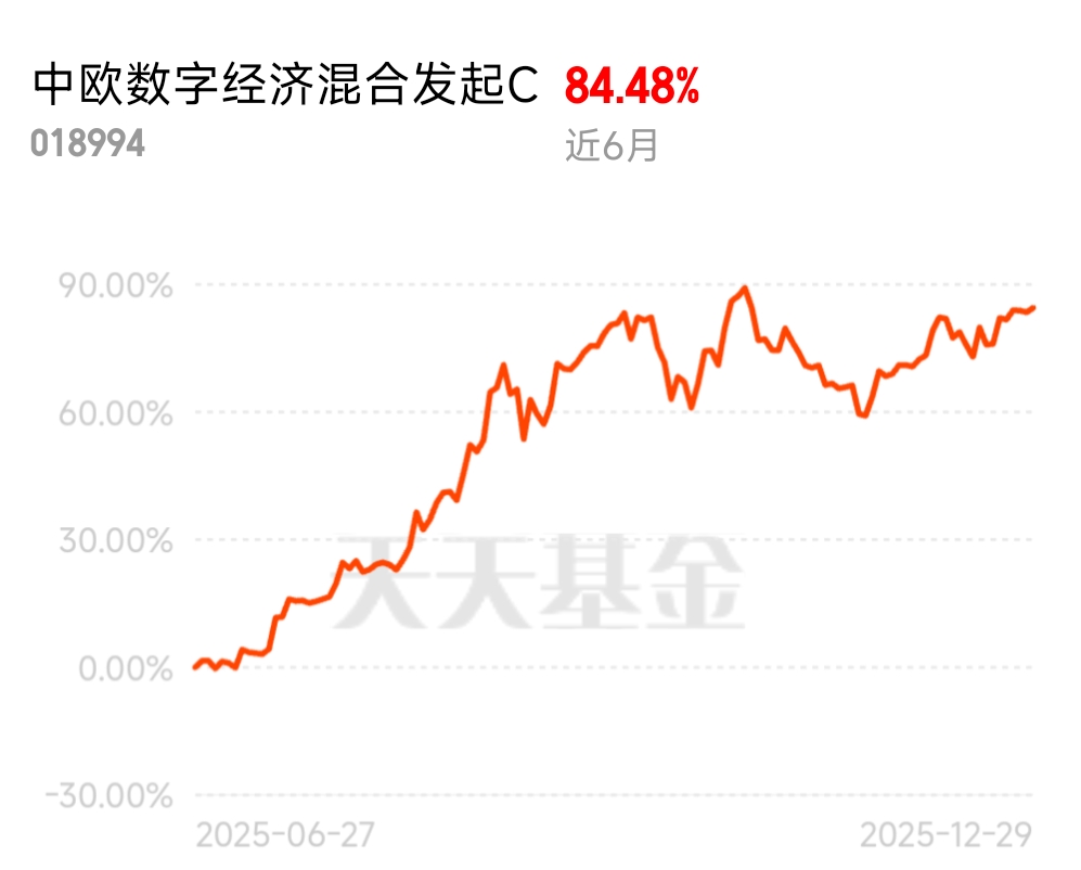 2026 年全球云厂商资本开支要大增 1500 亿美元,AI 基础设施需求持续火爆,追高不如选精准布局的。中欧数字经济混合发起 C 近 6 月 84.48%,聚焦算力核心,基建和应用都覆盖,上涨动力足。