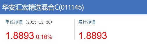 $华安汇宏精选混合C$(011145)昨天涨了0.16%