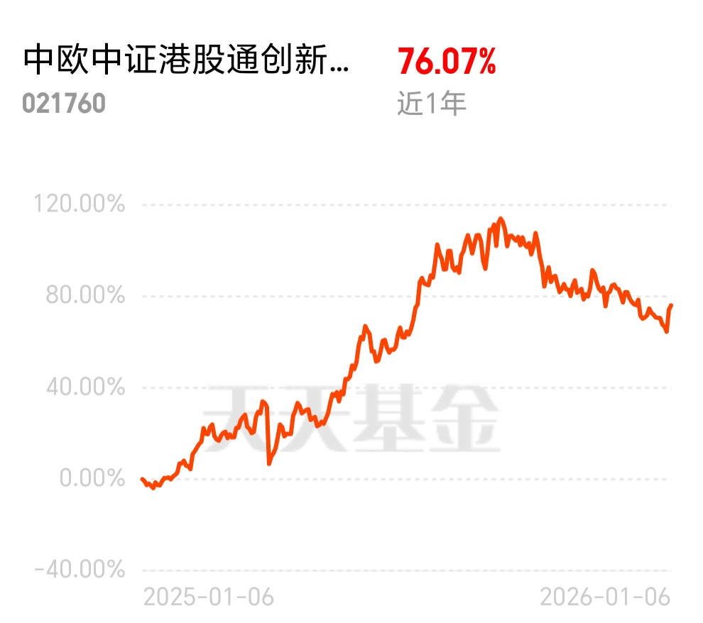 A 股港股创新药板块联动上涨,风险偏好明显改善,资金开始抢筹!板块深度回调后估值见底,$中欧中证港股通创新药指数发起C$ 近 1 年 76.07%,重仓百济神州等龙头,既能享上涨收益又不用担过多风险。