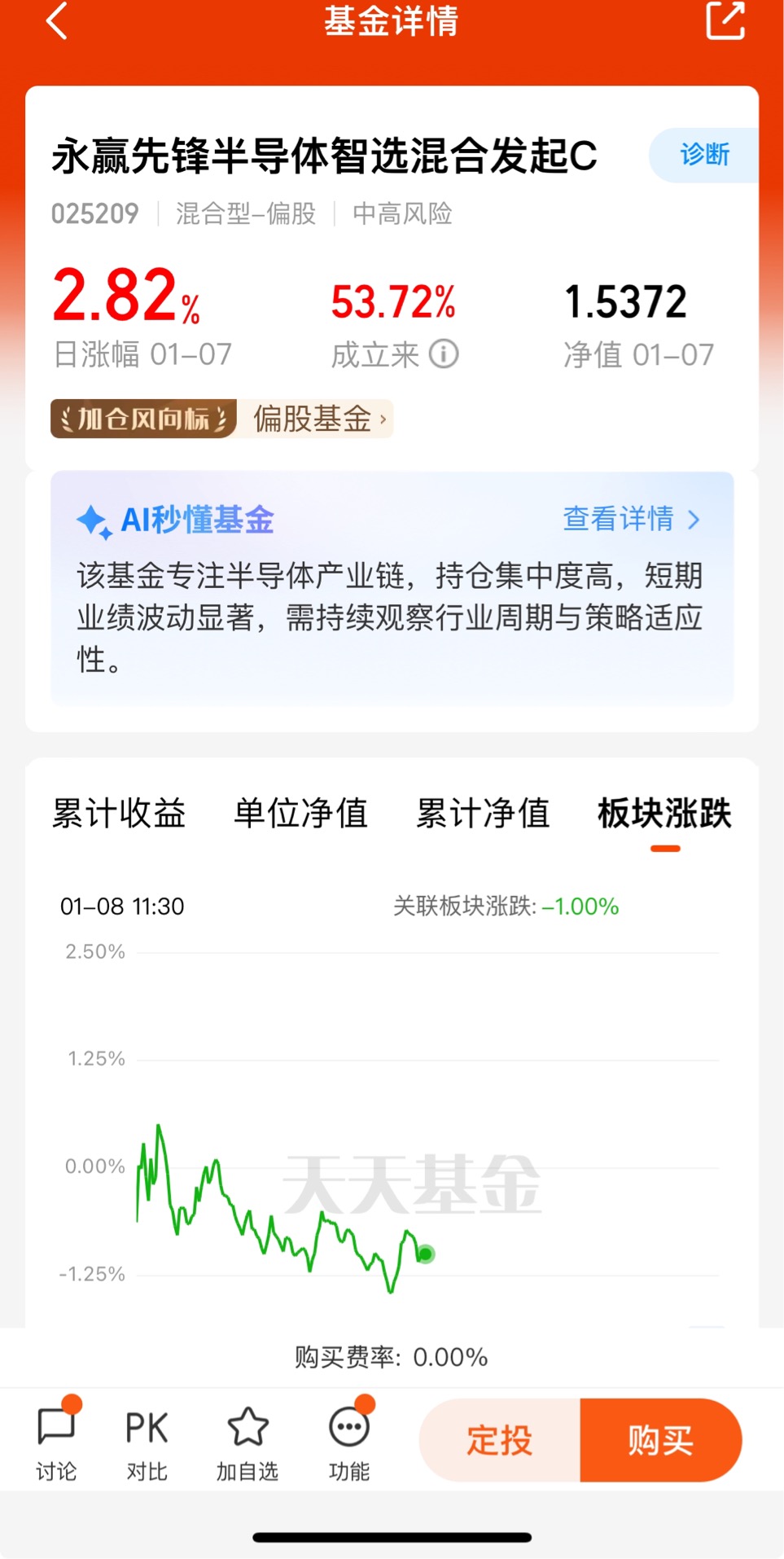 $永赢先锋半导体智选混合发起C$昨天给力收2.82%,近一周收15.45%,近一