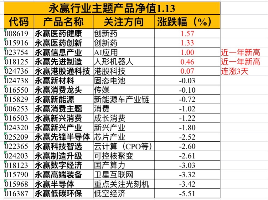 1.13行业主题产品净值更新汇总~来看看永赢家族的表现吧~