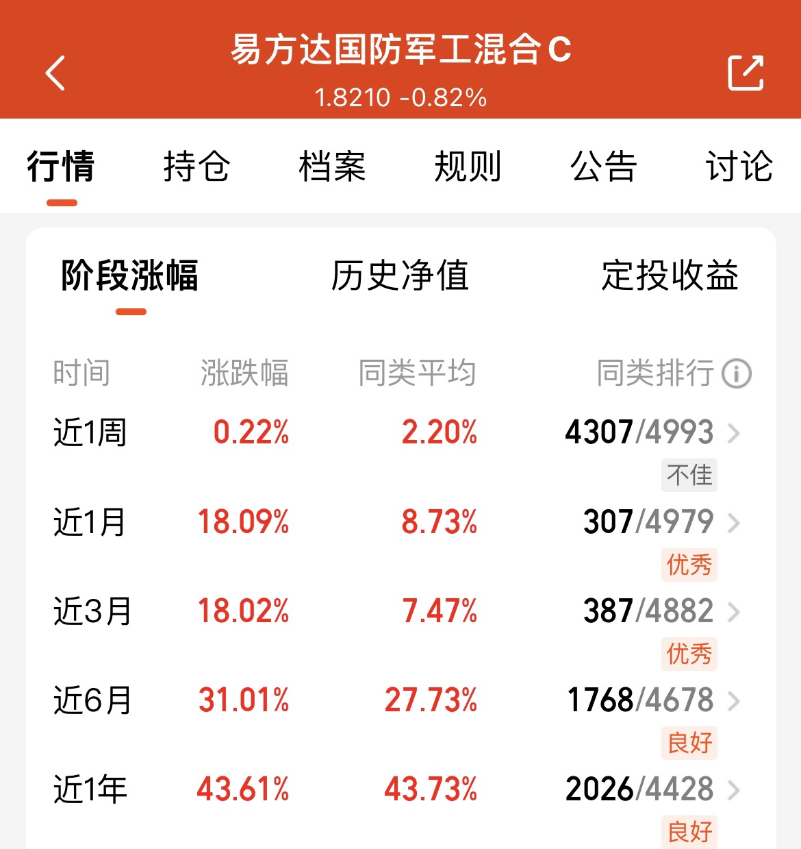 今天大盘行情分化明显,三大指数涨跌互现,大科技板块表现不错。近期商业航天利好不断,卫星频轨申请落地、可回收火箭技术突破,行业迎来爆发前夜。军工板块跟着调整,不过调整也是倒车接人的好机会,$易方达国防军工混合C$ 重仓商业航天和军民融合龙头,估值低位有优势,我比较看好这个方向,打算分批布局,争取稳稳把握这波行情机遇啦!