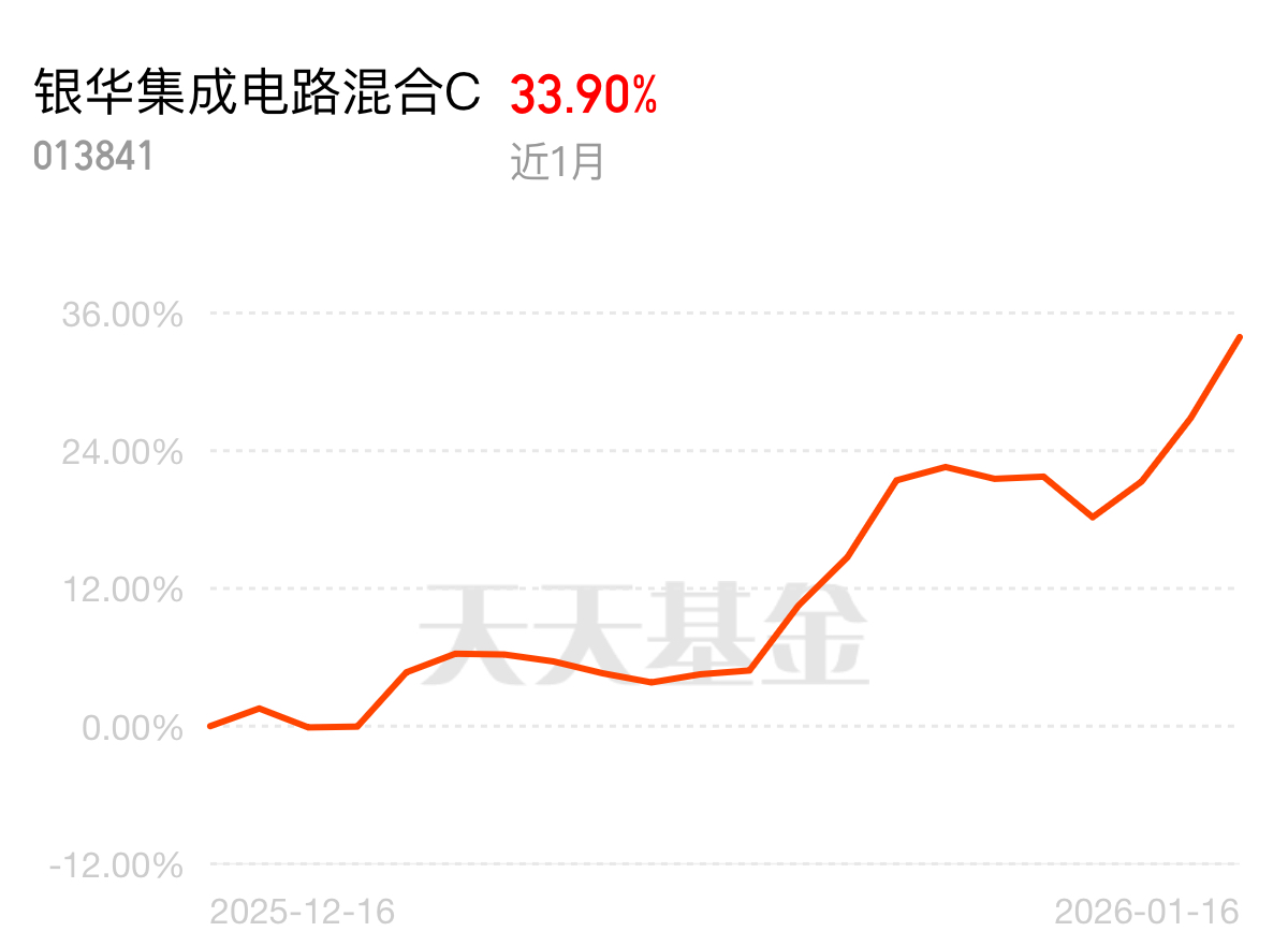 银华集成电路混合 C 真的猛!单日 5.56%,近一月 33.90%。AI 驱动存储芯片供需错配,涨价停不下来,长鑫科技上市要改变格局,当下正好,我果断冲!
