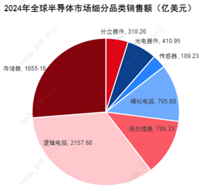根据世界半导体贸易统计组织(WSTS)的统计,2024年,全球半导体市场销售额约6305.49亿美元,其中存储芯片销售额约为1655.16亿美元,占比高达26%,是仅次于逻辑电路的第二大半导体细分市场。