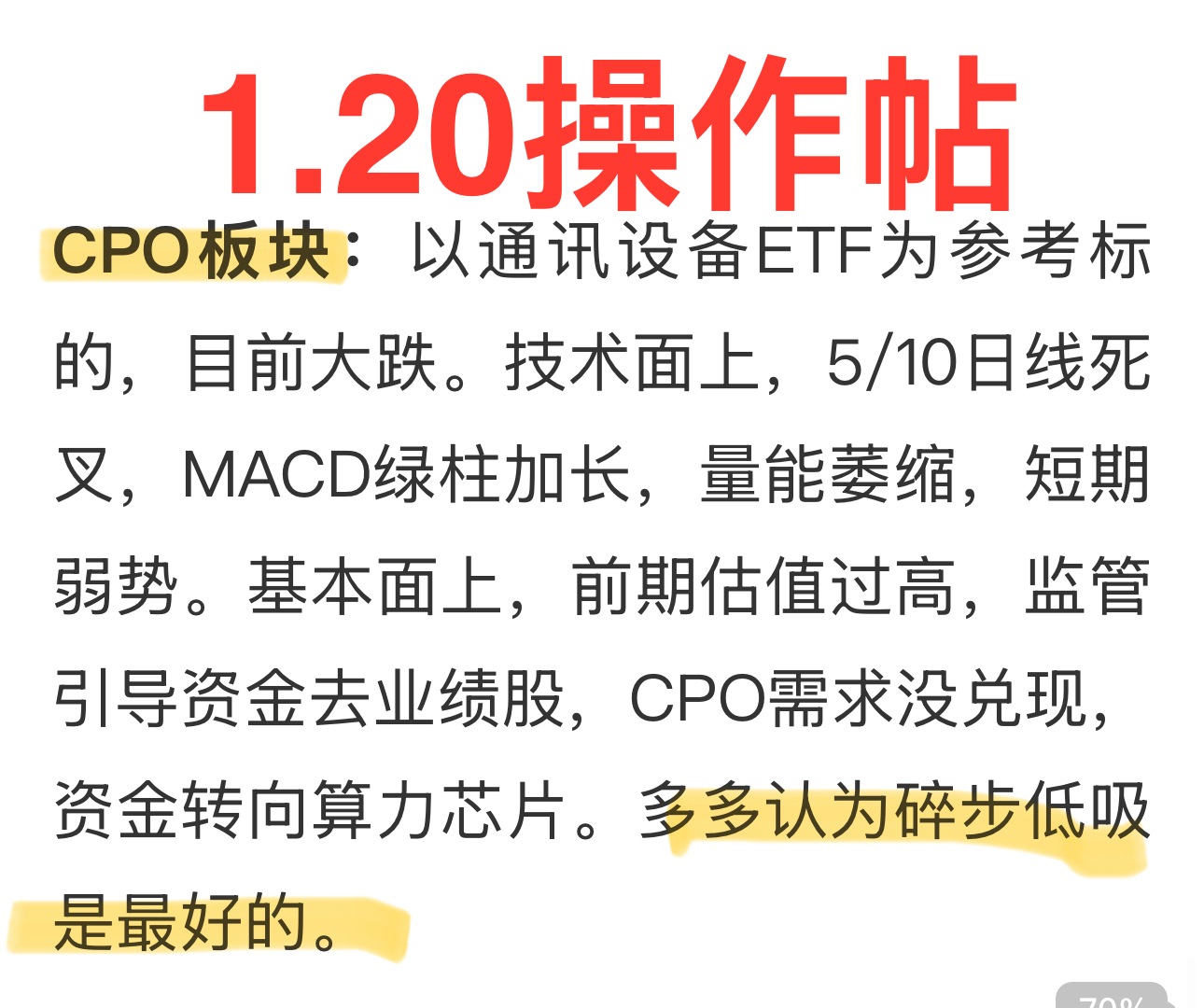 CPO板块:以通讯设备ETF为参考标的,目前小涨一个多点,技术面上,震荡上行,依托5日线,MACD红柱小幅放大,光模块价格企稳,海外订单回流,800G/1.6T产品量产加速。周线看涨!