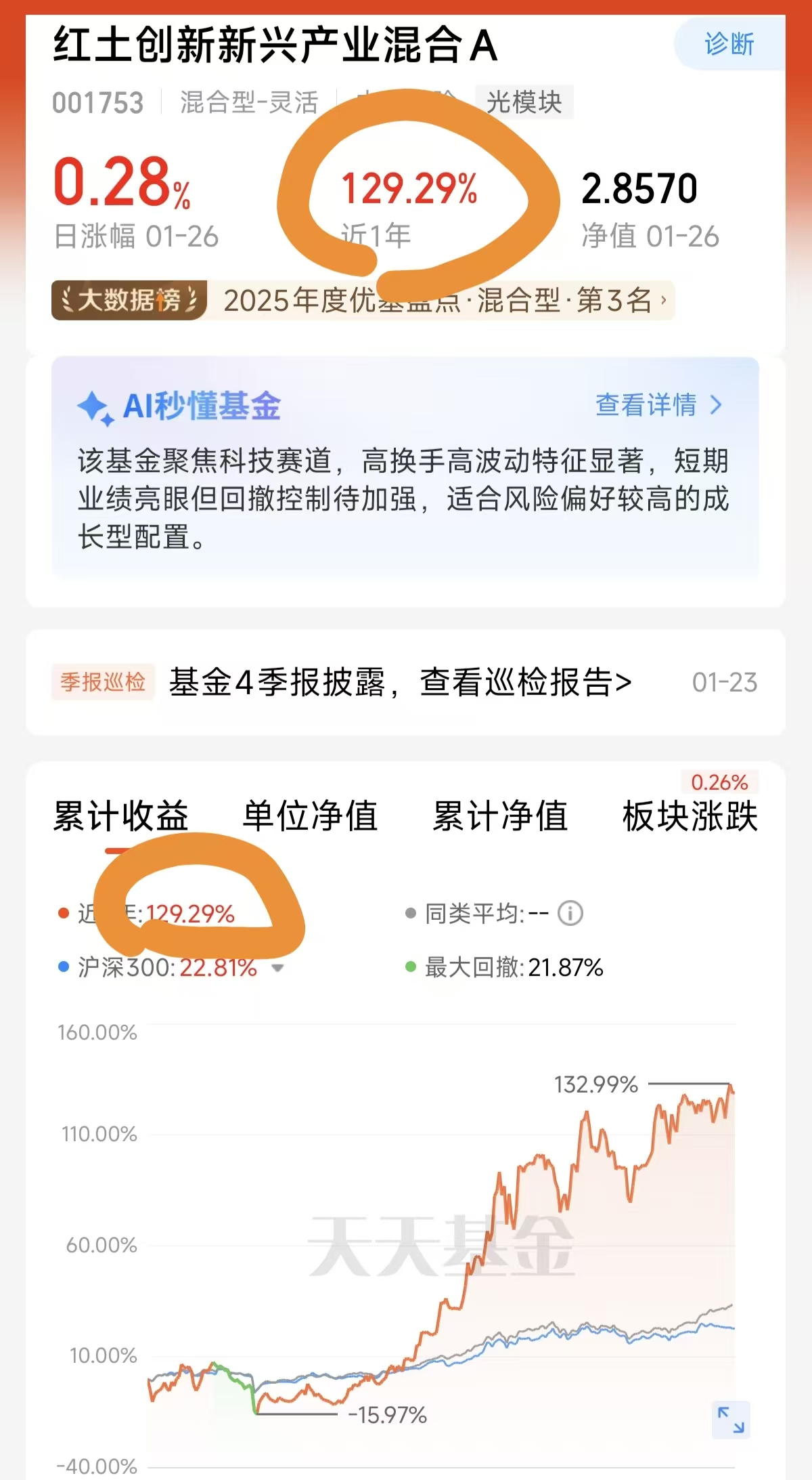 现在国产半导体的故事,已经不再仅仅是我们能设计出芯片。更让产业兴奋的是,整个链条都在发生肉眼可见的变化。红土创新新兴产业混合(001753) 的布局,就敏锐地捕捉到了这场链条式的升级。它的资产没有分散,而是高度集中于通信和电子这些核心赛道。这种贯穿产业链的布局思路,已经结出了实实在在的果实。在过去的一年里,该基金实现了129.29%的回报。