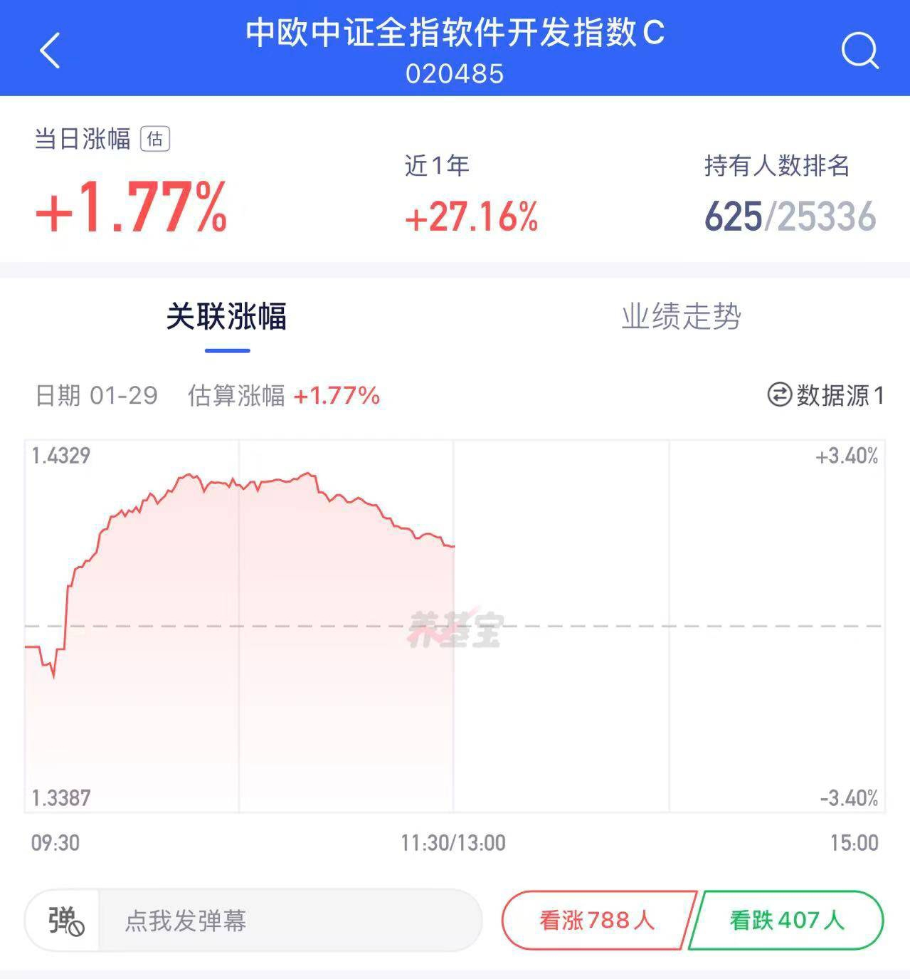 想抓AI风口的看过来,今日估值播报来啦,中欧中证全指软件开发指数发起C近1年27