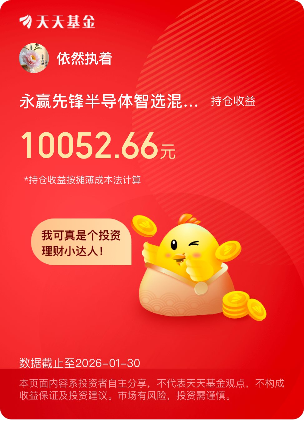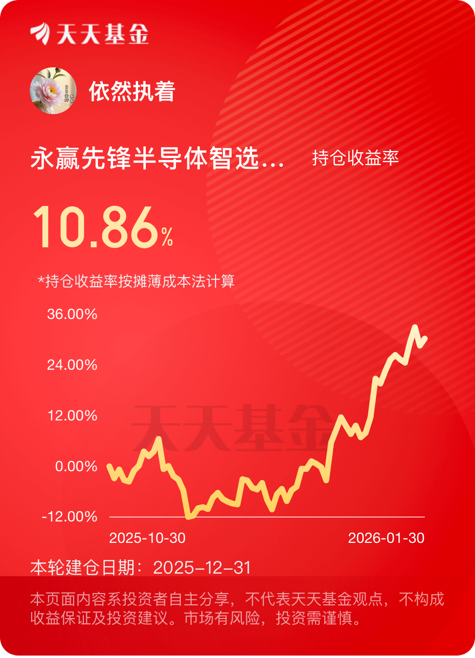 2026年飘过了一个月,明天开启二月的“新月”第一天,永远“敬畏”,走一步看一步。一切看“缘深缘浅”都是你。$永赢先锋半导体智选混合发起C$ #晒收益#
