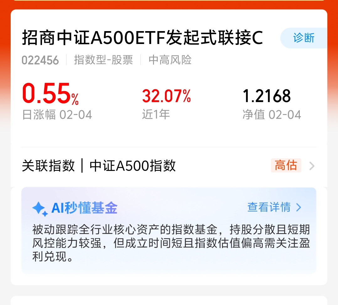 大盘近期波动比较大,各大板块轮动速度很快,交易难度加大,板块持续性变弱,当下处于大轮动周期,宽基持仓比较均衡一些,$招商中证A500ETF发起式联接C$,昨天涨了0.55%, 近一年涨了32.07%,业绩还不错呢,年前求稳我准备分批布局了!