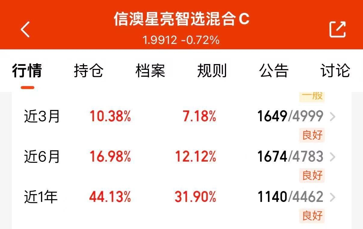 板块轮动太快,每天盯盘太累还不赚钱,信澳星亮智选混合C一键打包小盘热门方向,近半年收益稳健,我借今天调整继续补点,轻松躺赢行情。$信澳星亮智选混合C$