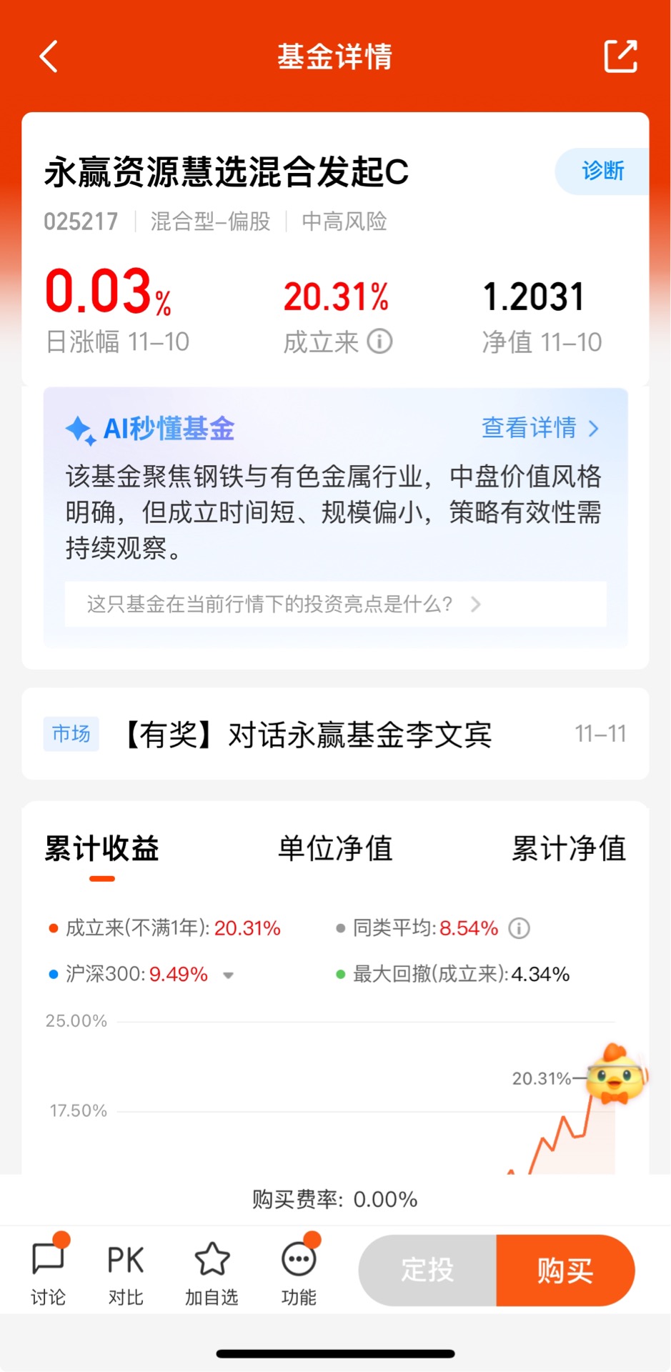 $永赢资源慧选混合发起C$昨天收0.03%,近一周收2.71%,近一个月收10.