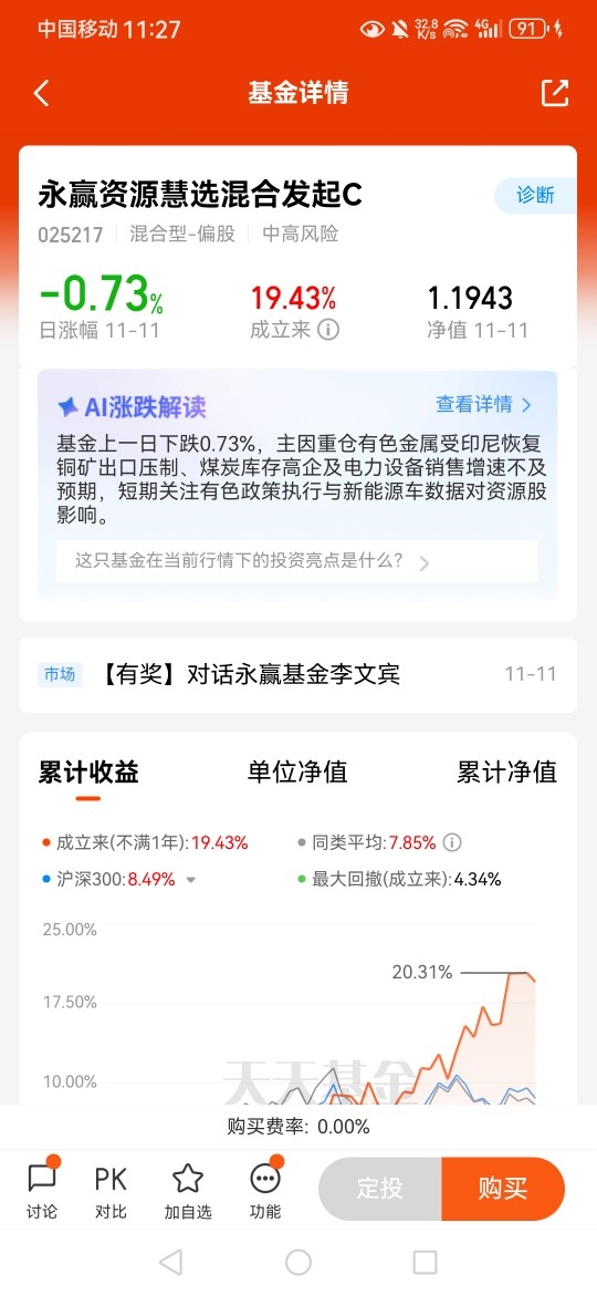 $永赢资源慧选混合发起C$是聚焦钢铁、有色金属等资源主题的混合型基金,成立不足1