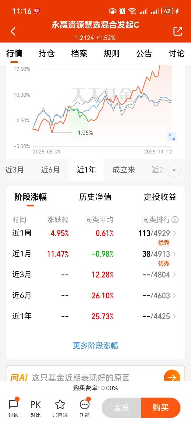 近期“左磷右锂”周期再度起舞,成为资本市场的热门主线。$永赢资源慧选混合发起C$ 昨天涨幅+1.52%,8月份才成立,近一个月涨幅已经高达+11.47%,这亮眼业绩已经印证了赛道选择的正确性。随着左磷右锂行情的持续发酵和资源板块的进一步走强,这款新基金后续有望持续捕捉行业成长红利,关注起来了。#4000点 到底要不要止盈?#