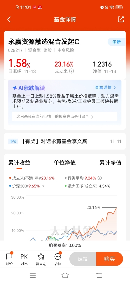 $永赢资源慧选混合发起C$热点“左磷右锂”,期待一下,昨天涨幅1.58%,刚成立
