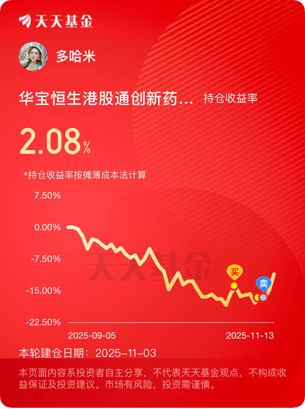 $华宝恒生港股通创新药精选ETF发起式联接C[025221]$ #晒收益#