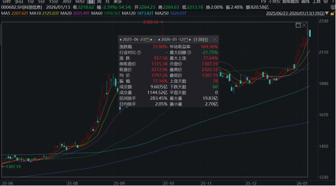 更值得玩味的是科创信息指数。它已经悄无声息地走出“六连阳”,从本轮低点算起,涨幅已超23%!如果我们将视野拉长,格局瞬间打开——自2025年6月23日那个关键低点以来,该指数累计涨幅高达72.8%! 若是从指数基日看,更是实现了99% 的惊人增长。
