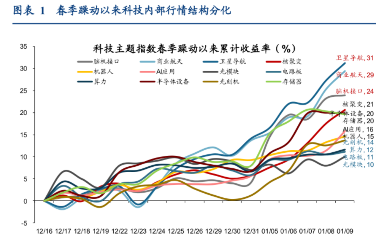 说到布局方向,我还是那个观点:2026年,甚至未来几年,真正的主线还得是科技。为什么这么笃定?大家看看这轮行情的脉络就明白了。从2024年9月启动的这波科技牛,到现在已经持续了15个月,但和历史上的科技牛市周期(通常30-35个月)相比,时间上还有空间。更重要的是,这轮科技行情背后有坚实的逻辑支撑——政策端,"人工智能+"行动方案、半导体国产化、数字中国建设等顶层设计不断加码;产业端,AI大模型、算力基础设施、智能驾驶等新技术应用正在加速落地;资金端,机构对科技成长板块的配置比例还在提升。而且从全球视角看,成熟市场如纳斯达克,科技股长期都是核心资产,中国科技企业虽然在部分领域还有差距,但成长空间和国产替代空间都很大。所以,即使短期有波动,科技这条主线的长期逻辑并没有改变,调整反而是上车机会。
