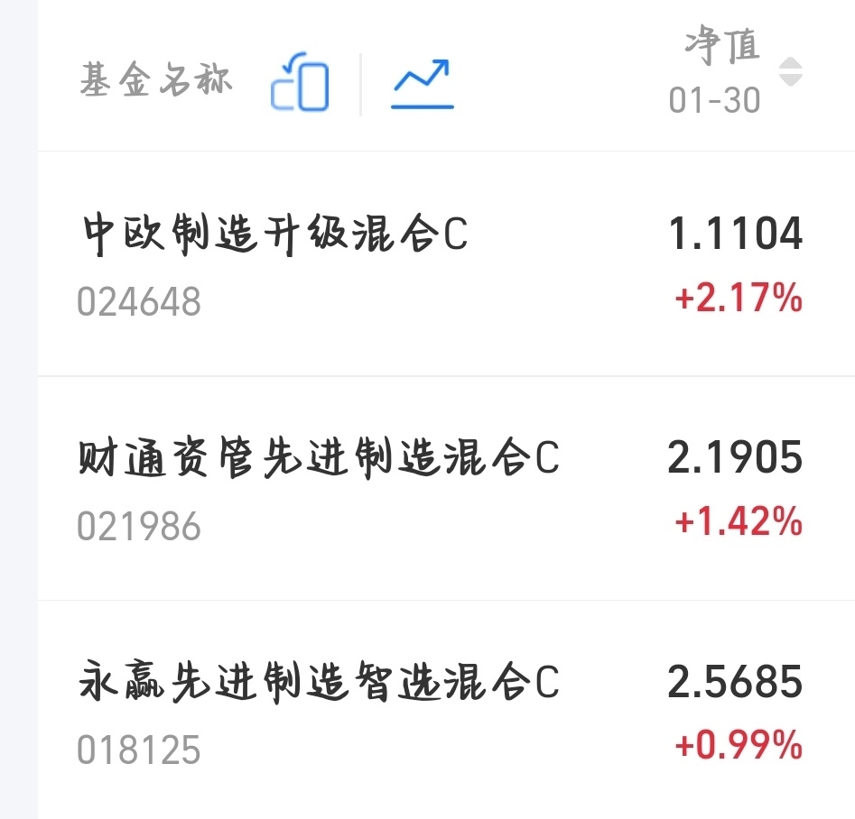 制造指数震荡下 $中欧制造升级混合发起C$抗打!今日净值大涨2.17%,近一个月涨超8%,妥妥的制造板块优等生~基金经理精准调仓人形机器人核心部件,紧扣高端制造+硬科技主线,踩准新质生产力行情,涨势稳弹性足,布局制造升级选它超靠谱!